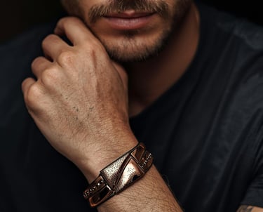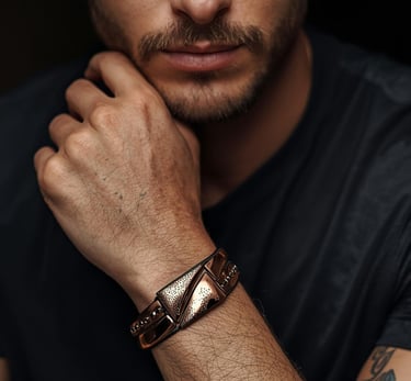 Chaque pièce devient ainsi unique, marquée par le temps et l’usage, comme une empreinte personnelle. Dans certaines cultures, on dit que la patine du cuivre reflète l’énergie de son porteur — plus il est porté, plus il devient vivant.
